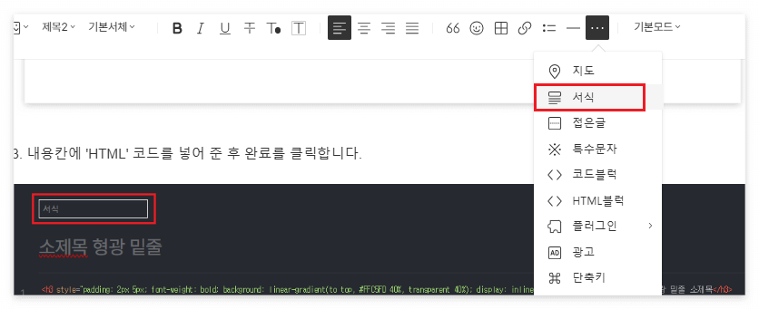 서식(html)을 이용한 티스토리 소제목 꾸미기