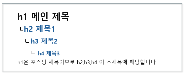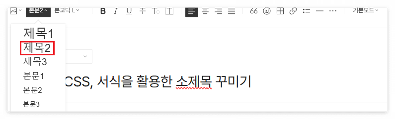 이번에 작성하는 내용은 h3(제목2)에 해당하며 h2,h4는 편집할 때 코드 앞 부분에서 수정하면 됩니다.