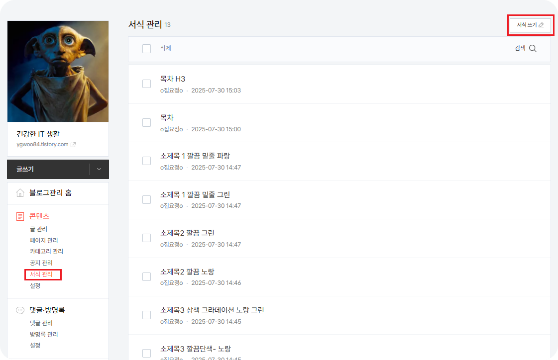 작성하는 글마다 다르게 소제목 서식을 변경하고 싶으면 티스토리-서식 기능을