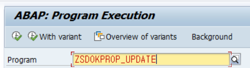 - “Program” 선택 후, 프로그램 명: ZSDOKPROP_UPDATE 입력.
