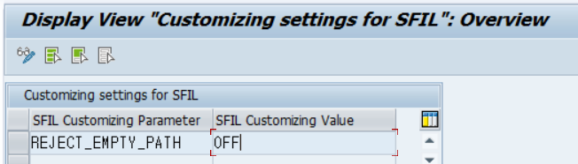 - 개발 환경(Dev System)에서 일부 컴포넌트 개발자들이 REJECT_EMPTY_PATH를 'OFF'로 변경하거나 삭제하고 이를 운송(Transport) 시 포함시키는 것을 잊은 것이 원인입니다.
