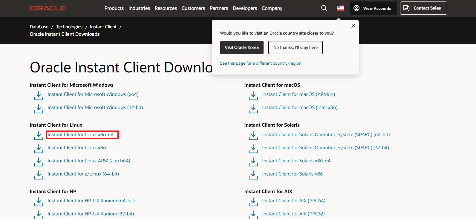 Oracle 공식홈에서 Instant Client 를 Download 해줍니다.