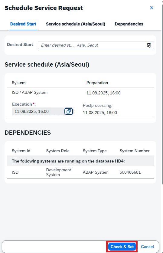 이제 스케쥴 설정 후 Check & Set을 선택해줍니다.