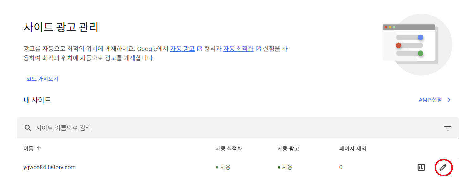 3. 해당 사이트에 “연필” 아이콘 클릭