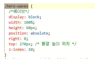 물결의 위치는 .hero-waves 에서 top: 270px 부분에서 변경해주면 됩니다.