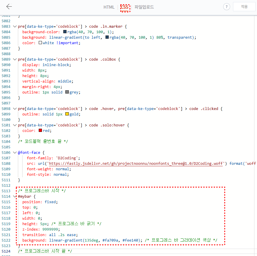 블로그 상단 프로그레스 바 꾸미기