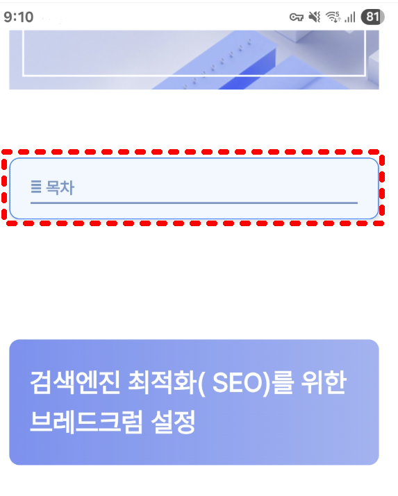 티스토리 앱에서는 목차 글자만 나오고 리스트 표기가 안되는 현상이 발생합니다.