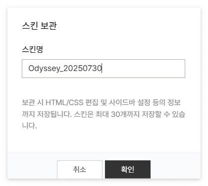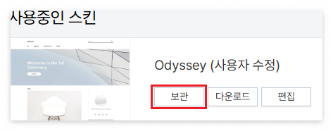 티스토리 관리자 화면 > 꾸미기 > 스킨 변경 > 사용중인 스킨 > 보관 '클릭'